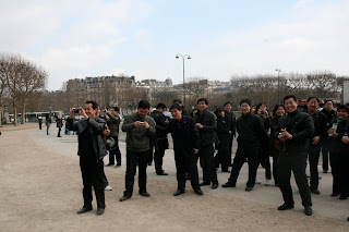 At the top of the Tour Eiffel, students were able to take in the panoramic views of Paris: the Seine, Louvre, Notre Dame, Arc de Triomphe, and Sacre Coeur to name a few. We rendez-vous'ed at the base to take plenty of group pictures. It seems that our group is quite popular, as you'll note in the "paparazzi" photo :)